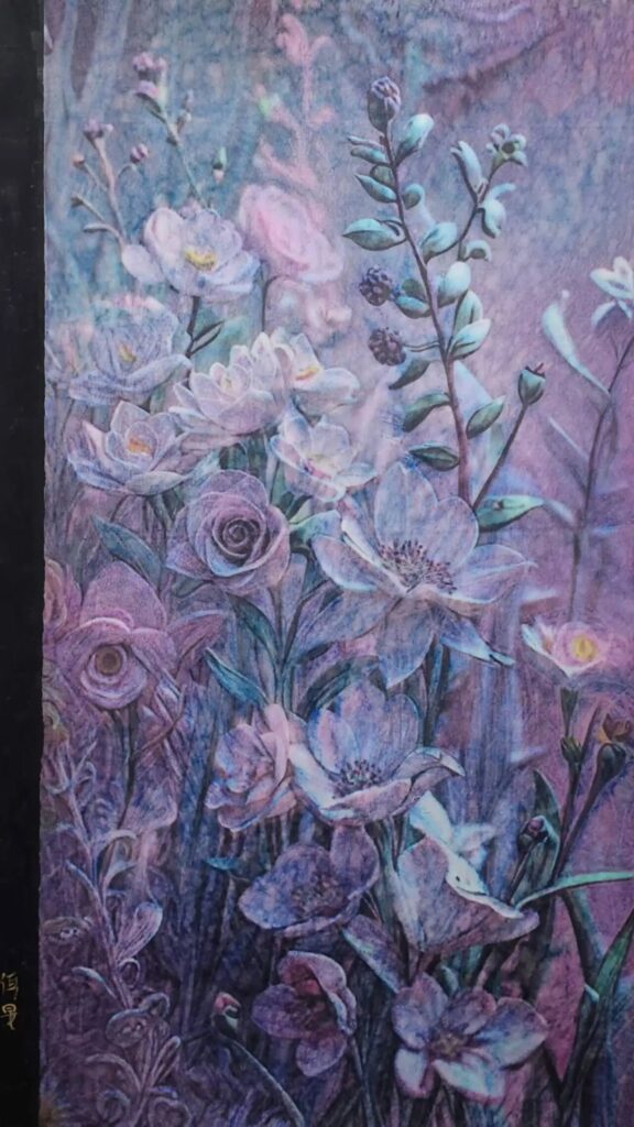 When observing Yang Ermin’s still lifes, one is struck by this constant tension between the recognizable and the elusive. His floral compositions, his arrangements of fruits and everyday objects perpetually oscillate between figuration and abstraction. Souriau would speak here of a “superexistence” of the work of art, which surpasses its simple materiality to reach a superior mode of being. “Art is the great intensifier of existence,” he affirmed [4]. And isn’t this exactly what Yang Ermin does with his colored wash paintings? He intensifies the very existence of the objects he represents, conferring upon them a presence that transcends their daily banality.